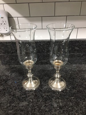 0 Response to "1960s Vintage Sterling Silver Candlesticks With Blue Etched Hurricane Globes"